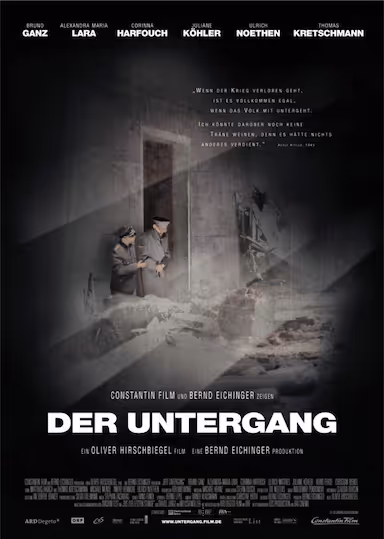 主演: 布鲁诺·冈茨,亚历山德拉·玛丽亚·拉娜,科琳娜·哈弗奇,乌尔里希·马特斯,茱莉安·柯勒,海诺·费尔希,克里斯蒂安·贝克尔,马蒂亚斯·哈比希,托马斯·克莱舒曼,米歇尔·门德尔,安德烈·赫尼克,乌尔里希·诺登,比吉特·米尼希迈尔,罗夫·凯尼斯,尤斯图斯·冯·多赫纳尼,迪特尔·曼,克里斯蒂安·雷德尔,戈兹·奥托,托马斯·林平泽尔,托马斯·蒂梅,杰拉德·亚历山大·海德,Bettina Redlich,海因里希·施密德,安娜·塔巴赫,迪特里希·霍林德布穆尔,乌尔里克·克鲁比格尔,卡尔·克兰茨科夫斯基,尤根·汤克,大卫·史崔梭德,法比安·布施,Aleksandr Slastin,阿丽娜·索卡,Gregory Borlein,Laura Borlein,丽扎·波亚尔斯卡娅,迈克尔·布兰德纳,马丁·布兹克,马蒂亚斯·格内丁格尔,Norbert Heckner,恩诺·海瑟,尤莉亚·延奇,迈克尔·肯德,Elisabeth von Koch,斯特凡·梅伦,卡特琳娜·珀罗简,Christian Schmidt,奥古斯特·施梅尔泽,Klaus-Jürgen Steinmann,奥利弗·斯特里泽尔,Klaus B. Wolf,T