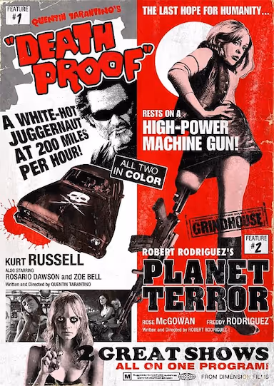 本片由两部电影组成,分别为昆汀·塔伦蒂诺(Quentin Tarantino)所拍的《死亡证据》,以及罗伯特·罗德里格兹(Robert Rodriguez)所拍的《恐怖星球》。