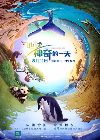 曾成功推出电影《地球》的BBC地球影业带来了令人期待已久的续集——《地球:神奇的一天》,一段揭示自然界惊人力量的神奇旅程。一天内,我们跟随太阳的脚步从世界上最高的山到最远的岛、从野外的丛林走到繁华的城市。由于在电影制作技术上取得的惊人突破,从而我们可以让你能与一群难忘的角色亲密接触;幼年的斑马宝宝想要穿过一条湍急的河流, 英勇的企鹅爸爸每天都要从事一项与大海以性命相搏的工作来抚养家人,一个喜欢在大海里垂直着打瞌睡的抹香鲸家族,还有走在寻找真爱路上的树懒。《地球:神奇的一天》用幽默、亲密、感性而令人惊叹的电影感来讲述地球上这充满你见所未见而无法想象的神奇的每一天。